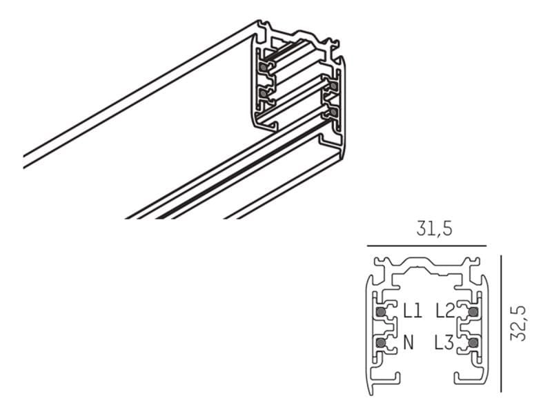 3-fase skinne Noa - overflade- eller pendelmontering Den farvede, lakerede skinne til et 3-fase skinnesystem er velegnet til overflade- eller pendelmontering. Ideel til butiksbelysningssystemer. Matchende tilbehør, som f.eks. endedæksler, fremføringer eller forskellige stik, fås separat - Kobberleder Ø 4 mm² - Asymmetrisk design