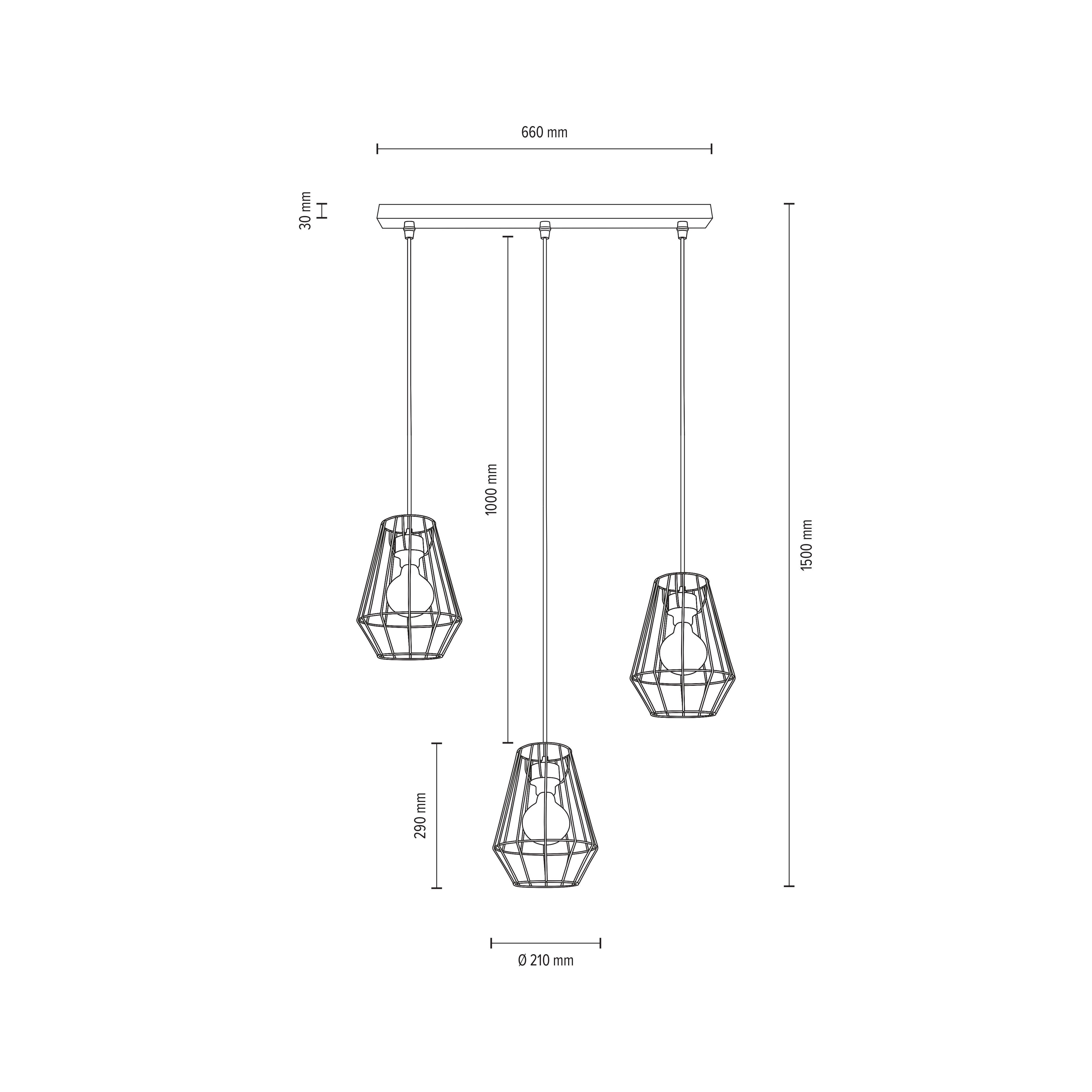 Finan pendel - tre lineært placerede cage-skærme i sort, lyse trædetaljer Den trefløjede Finan pendel kombinerer et banebrydende design med et naturligt touch. Det sidste opnås med en rund baldakin og ingen pendel lavet af lys, olieret eg. Ledning, skærme og fatninger er sorte. Dekorative glødelamper kommer til deres ret, da burskærme lavet af metalstivere giver udsyn til lyskilderne - Envostar brand armatur - Made in Europe - Bæredygtig emballage lavet af genanvendelige materialer