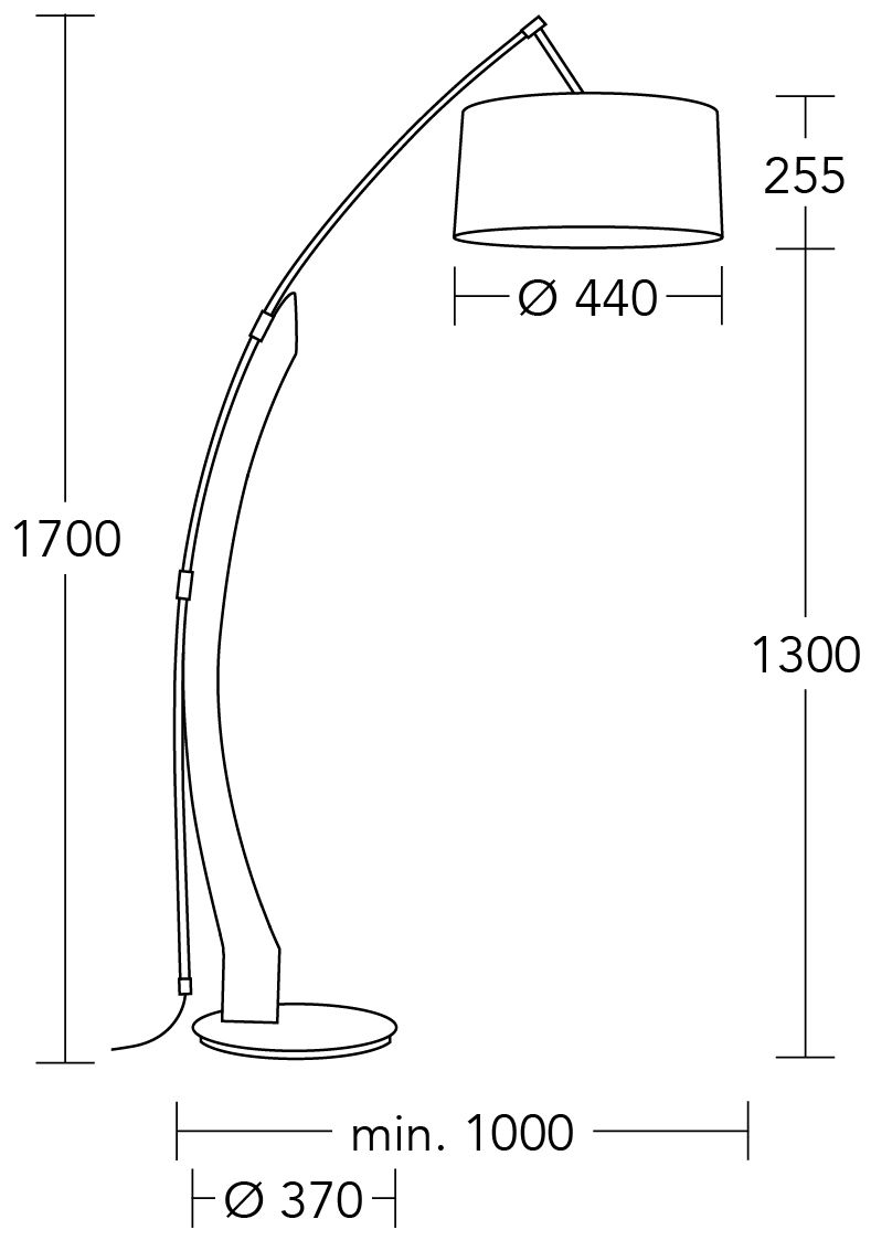 buelampe Amos er et elegant udseende i stuen og giver stemningsfulde lysmomenter. Lampens bund af træ er håndlavet og har en let bueform. Dette strækker sig opad gennem en metalstang, som lampeskærmen også er fastgjort til. Højden kan bestemmes efter behov ved hjælp af låseskruer, som muliggør behovsbaseret eksponering. Samspillet mellem trælampens base med metalbuen og den hvide bomuldsskærm skaber et særligt harmonisk helhedsbillede. Den hvide skygge skaber en særlig hyggelig lysatmosfære, når den tændes.