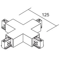 Denne X-kobling med hus af 30 % glasfiberforstærket nylon gør det muligt at koble fire LKM QUADRO DALI 3-fase strømskinner sammen i 90° vinkler.
