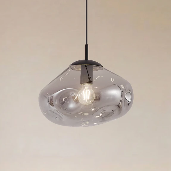 Hængelampe Lelia med 1 lyskilde og glasskærm i røggrå