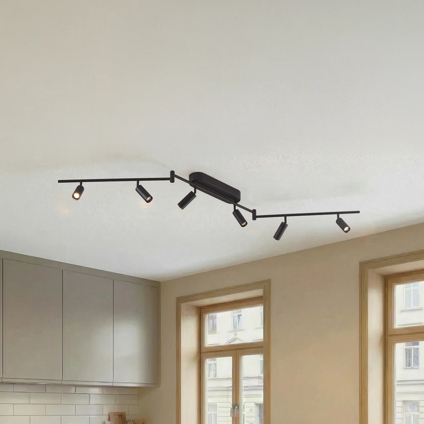 LED-loftlampe Eldrin med 6 drejelige spots for fleksibel lysdesign