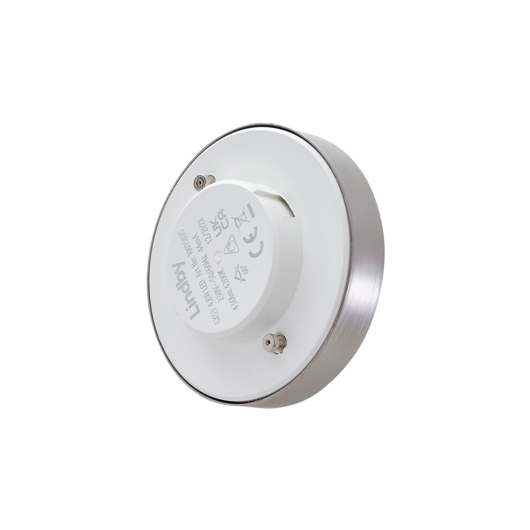 Lindby LED-pæren GX53 overbeviser med et slankt, nikkelfarvet hus. Med en farvetemperatur på 4.200 Kelvin giver den et behageligt varmhvidt lys, der skaber en indbydende atmosfære. Den kompakte konstruktion og diameteren på 7,5 cm gør den ideel til brug i flade armaturer eller trange indbygningssituationer.