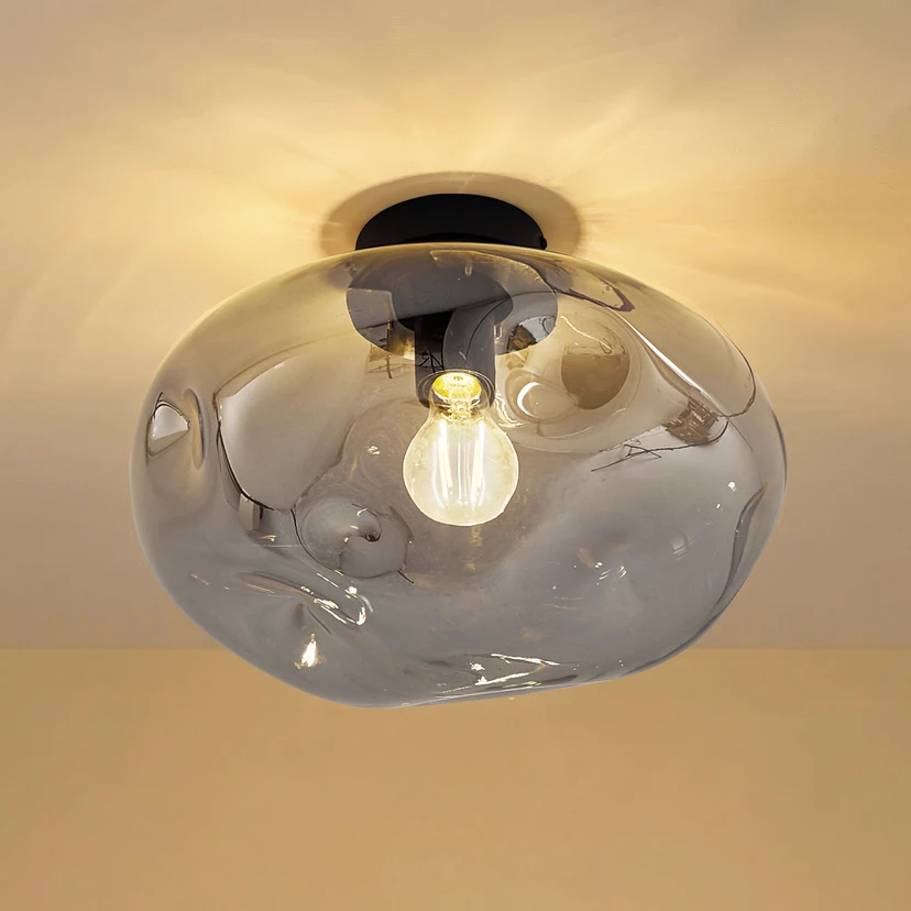 Lindby loftlampe Lelia, røggrå, glas, Ø 35 cm