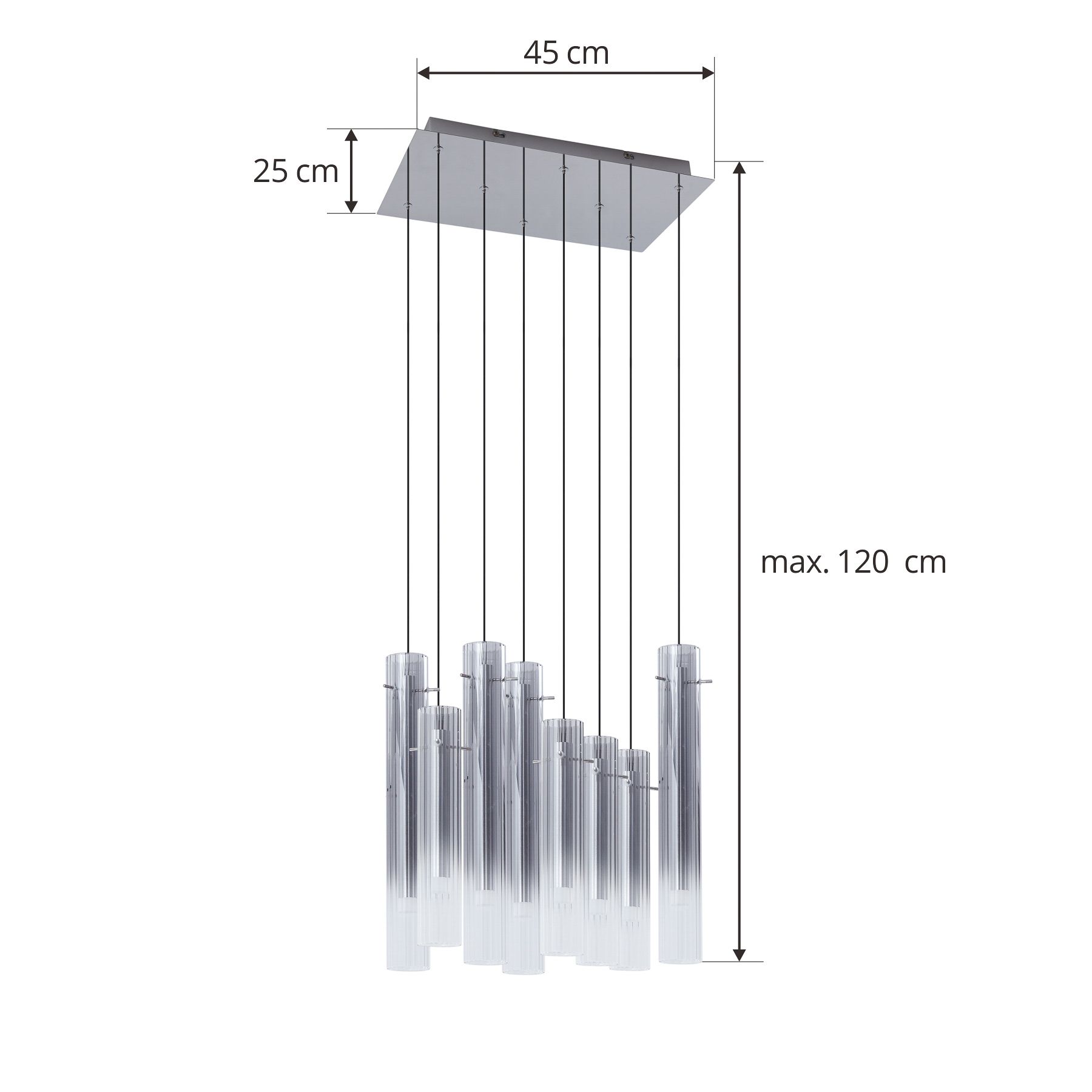 Korvitha LED-pendel med otte glasskærme Denne lampe kombinerer funktionel belysning med et attraktivt design. Du kan regne med førsteklasses kvalitet fra Lucande-mærket til denne lampe. Den varme hvide lysfarve giver dit opholdsrum en behagelig atmosfære. Lampen giver mulighed for at justere lysstyrken til dine behov i tre niveauer (10 %, 50 % og 100 %) ved hjælp af en vægkontakt. Den supplerer dit personlige indretningskoncept takket være sit attraktive udseende og kan også bruges som et dekorativt element, når den er slukket. Loftslampen skaber et flot look og tilfører atmosfære til ethvert rum. Den fås i grå og sølv. Dit interiør vil blive smagfuldt suppleret af lampen. Skab attraktiv belysning i dit hjem med denne lampe.