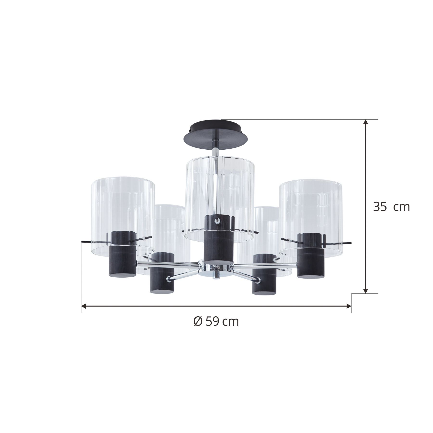 Lucande loftslampe Eirian, 5-lys, sort, glas, E27