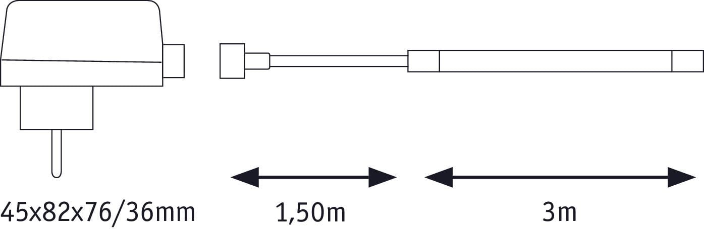 - Transformator - længde 7,57 cm, bredde 4,45 cm, højde 8,16 cm