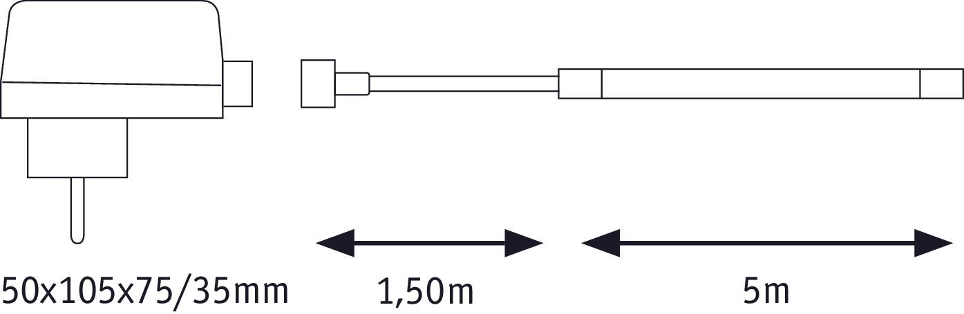 - Transformator - længde 7,5 cm, bredde 5 cm, højde 10,5 cm
