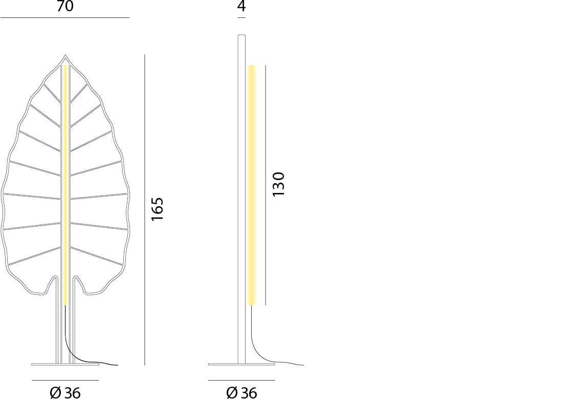 - højde på LED-panel 130 cm; Ø fod 36 cm