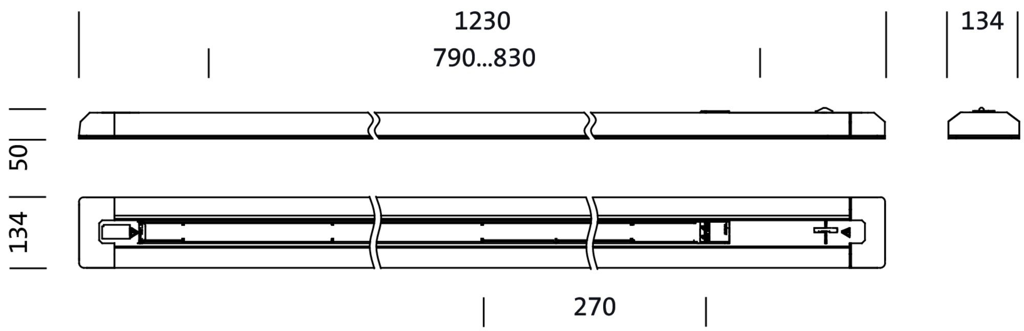 - Tilslutning: 5-polet terminal - med struktureret aksial linse og mikroafskærmning - symmetrisk bredstrålende med UGR 19 i synsretningen på langs og på tværs af armaturet - gennemsnitlig nominel levetid 50.000 h L80B50 ved UT = 25 °C