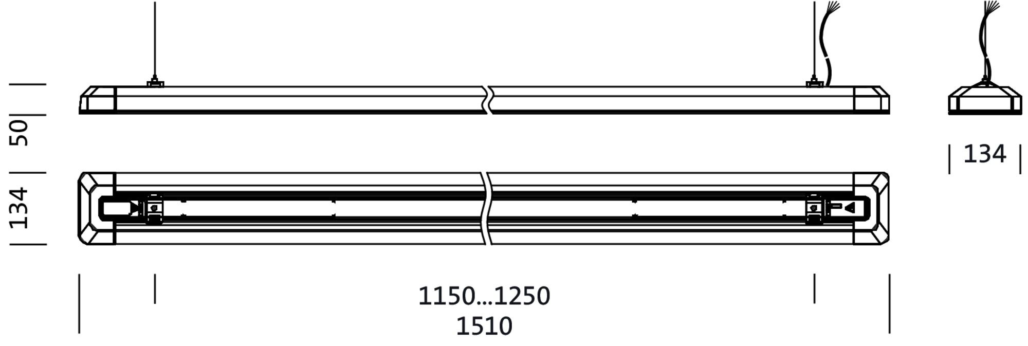 Dæmpbart Taris LED-pendelarmatur med EVG DALI Takket være den primære afblænding ved hjælp af en mikroafskærmning opnår Taris LED-pendelarmatur et blændfrit lys med et afblændingsindeks på UGR 19, hvilket gør det perfekt til brug i kontorer med computerarbejdspladser. Pendelarmaturet er fremstillet af plast, og den primære fotometriske afdækning består af en aksial linse af PMMA med en struktureret overflade. Det universelle hvide lys fra LED'erne udsendes symmetrisk både opad til indirekte, generel rumbelysning og nedad, hvor det f.eks. oplyser skrivebordet direkte. Det skaber en meget behagelig belysning på kontoret eller i mange andre områder med computerarbejdspladser. Udstyret med en dæmpbar EVG kan armaturet også dæmpes via DALI (medfølger ikke). Monteringssættet til ophængning af armaturet medfølger ikke - det skal bestilles separat - Tilslutning: terminal 5-polet - med struktureret aksiallinse og mikroafskærmning - symmetrisk bredstrålende med UGR 19 i synsretningen på langs og på tværs af armaturet - gennemsnitlig nominel levetid 50.000 h L80B50 ved UT = 25 °C
