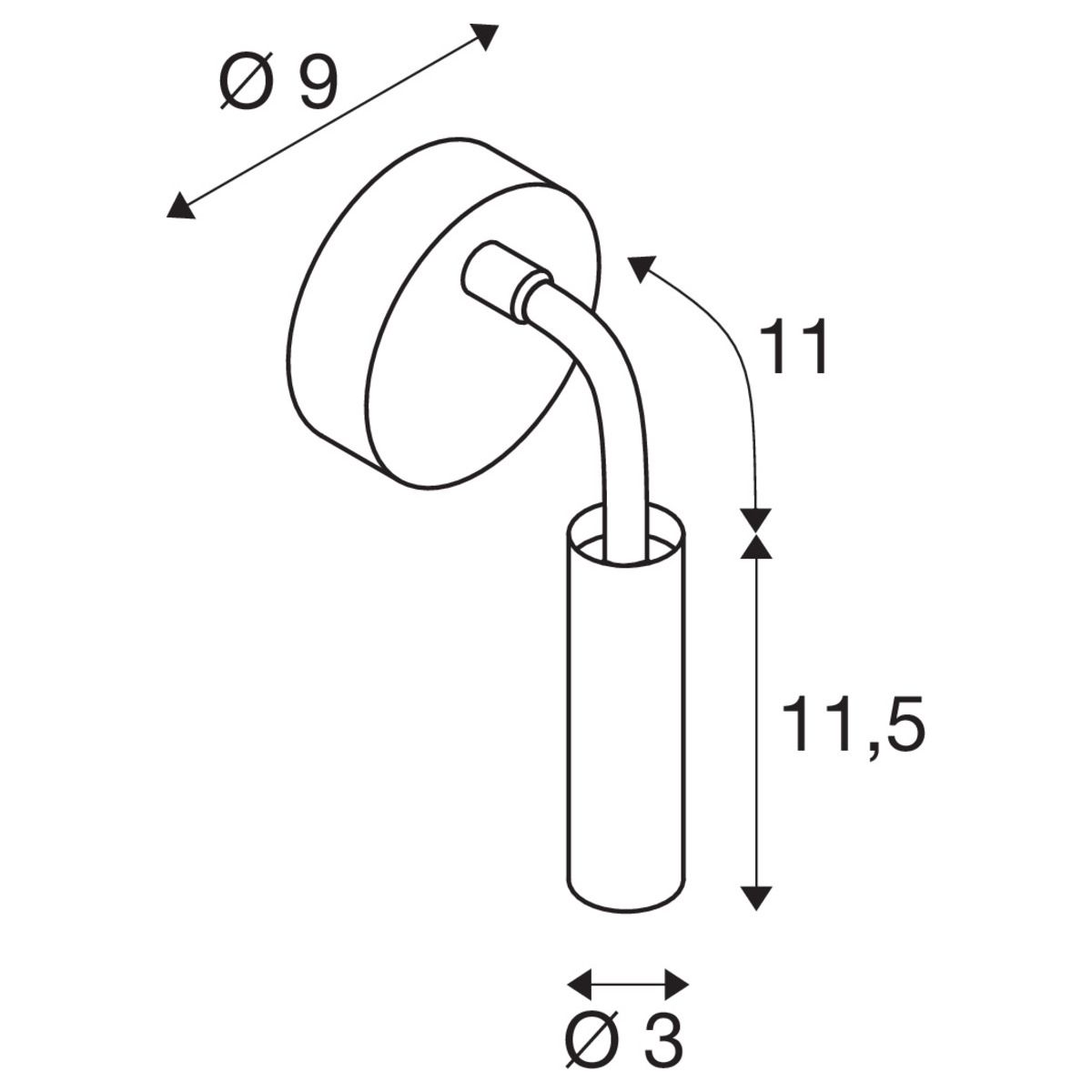 - Ø vægbeslag 9 cm, længde fleksibel arm 25 cm, spot – længde 11,5 cm, Ø 3 cm