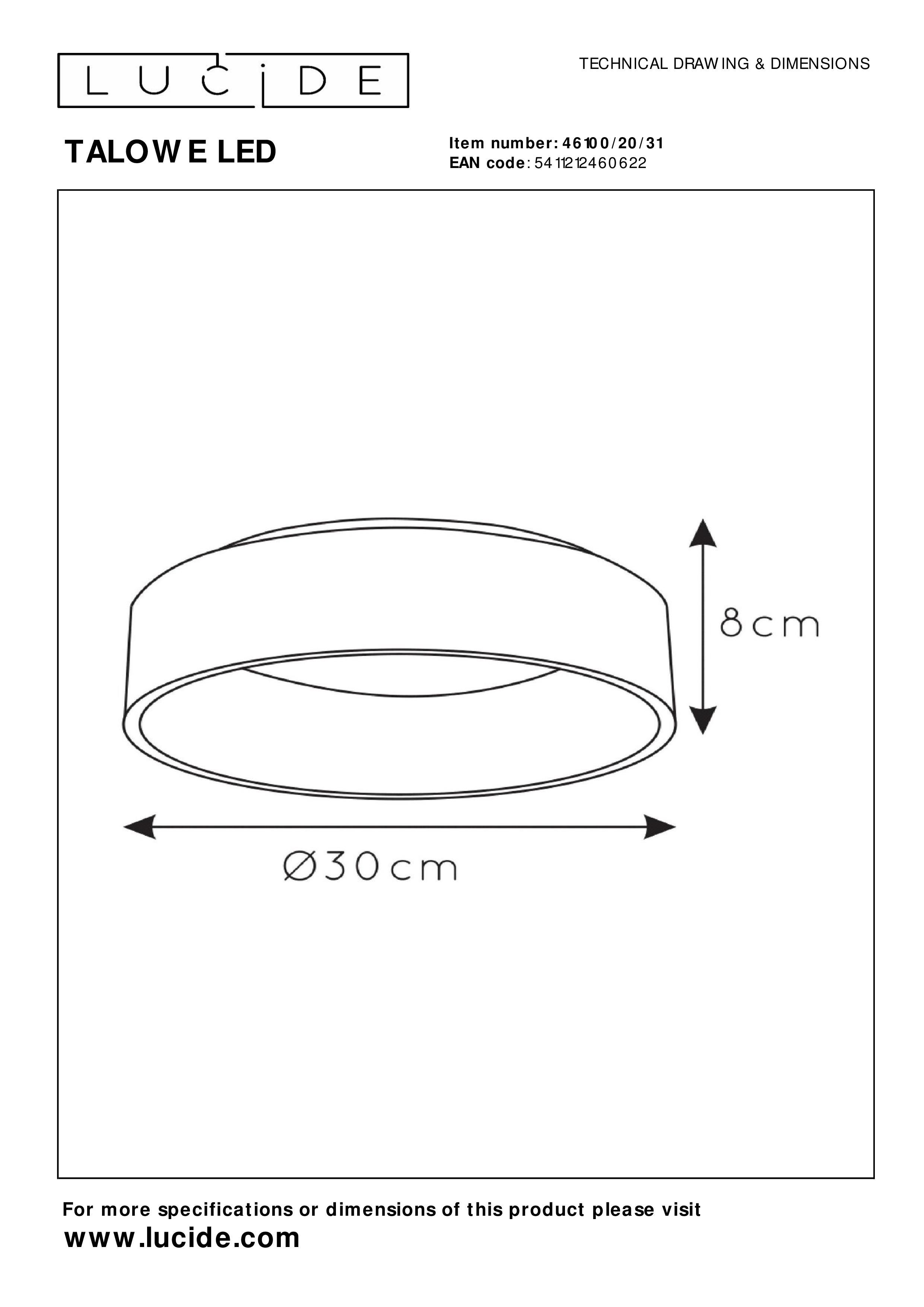 Talowe rund LED-loftslampe i hvid Talowe består af en hvid, rund aluminiumskrop, hvis kant rager lodret nedad. LED-lyskilderne er ikke placeret i den centrale cirkulære overflade mod loftet, men bag et mat akryldæksel på indersiden af kanten. Det gør Talowe til en kilde til omgivelsesbelysning, hvis enkle, tidløse design harmonerer med mange forskelligt indrettede stuer og lounges. Som en bonus er Talowe kompatibel med leading edge- og trailing edge-fasedæmpere.